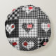 Black White Patchwork Hearts Seamless. Round Pillow