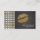 Black & White Pattern & Faux Gold Shine Lips Business Card