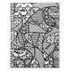 "Patterns Run Amok, 4" is the fourth in a series of black and white whimsical designs featuring a hand-drawn outline that's then filled in with repeating patterns. Circles, rings, squares, bulls-eye, targets, flowers and more are interspersed over the surface in an unpredictable array.
