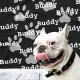 Black and white dog blanket personalized with your pet's name. The design features paw prints in gray and the text in white.