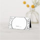 Place Card that is part of a wedding invitation set. The items in this set have a black and white design, and some items in the set have a peach accent color to some text.