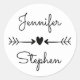 Black & White Personalized Wedding Hearts & Arrows Classic Round Sticker