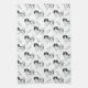 Pattern design featuring Destei's original cartoon illustration of a black and white coat color Phalène breed dog together with a personalizable text area for a name or other custom text.