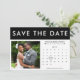 Black and white striped, color block wedding save the date card with photo and heart calendar. Personalize it with your event details.