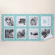 Display seven favorite photos or vacation memories on our beach towel featuring a gridded layout and square photos. Perfect for your Instagram snaps, towel features 7 photo templates as well as your single initial monogram and family name, against a bamboo lattice patterned background in vibrant aqua and white. To convert photos from black and white, click the Filter option for each image.