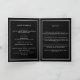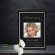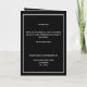 An elegant 4-page program. A black background, a faux silver frame, and space for your photo on the front. Personalize and add name, dates and your text. White text.