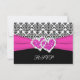 Black, White, Pink Damask & Hearts Reply Card