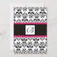 BLACK WHITE PINK DAMASK SQUARE MONOGRAM INVITATION