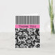 Black, White, Pink Damask Thank You Note Card