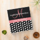 Black White Pink Monogram Script Polka Dot Wedding 3 Ring Binder