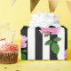 Black And White stripes With pink rose Flower stalk retro vintage inspired pattern wrapping paper