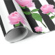 Black White Pink Rose Flower Stripes Lines Wrapping Paper
