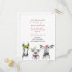 Your little girl is turning one! Invite your special guests with this adorable invitation postcard featuring hand drawn farm animals (a horse, a pig, a cow and a chick) in black and white. Baby's name, "first birthday" and the date are in pink hand lettered script typography, and personalized in a chic modern black sans serif. Copyright Elegant Invites, all rights reserved.
