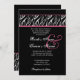 Black White Pink Zebra Flame Wedding Metallic Invitation