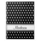 This patterned design has a black background with white polka dots and black and white stripes. The name is in a script font and can be customized using the personalization options. This is a terrific gift for girls, teens, students, moms, etc.