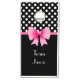 Black & White Polka Dots Pattern Pink Bow Cornhole Set. Cornhole sets with a pink ribbon on a black and white polka dots pattern. To personalize type your name in the template field.
