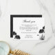 Elegant floral funeral thank you card in white with the black silhouettes of poppies.