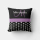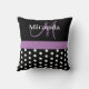 Black White Purple Monogram Script Polka Dots Throw Pillow