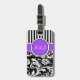 This monogrammed purple, black, and white stripes with floral damask pattern luggage tag is fully customizable and would give your luggage a chic and modern tag that would make it easy to spot at the airport. If you need help, or want something changed, email your request to niteowlstudio@gmail.com.