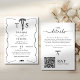 Black White QR Code Hand Drawn Wavy Curve Bow Invitation