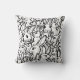 Black & White Rabbit Drawings Cute Bunny Pattern Throw Pillow