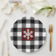 Black, White, Red Buffalo Plaid, Snowflake Paper Plates