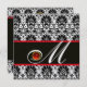 BLACK WHITE RED CHAMPAGNE DAMASK MONOGRAM Ruby Invitation