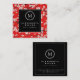 Black White & Red Cherry Blossoms | Monogram Square Business Card