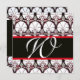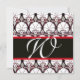 BLACK WHITE RED DAMASK CARNATIONS MONOGRAM Gold Invitation