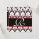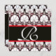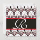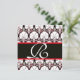BLACK WHITE RED DAMASK CARNATIONS MONOGRAM INVITATION
