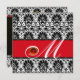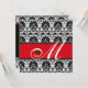 BLACK WHITE RED DAMASK MONOGRAM Ruby Invitation