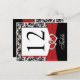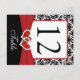 This romantic double-sided black and white damask table number postcard has a PRINTED red ribbon and a pair of PRINTED red FAUX glitter and jewel joined hearts on it that matches the wedding invitation shown below. **You must change the number 12 to each of the table numbers you need, add it to your cart, and then return and repeat the process until you have all the individually numbered cards that you need in your cart. Stand it on a small easel, or in your centerpieces. If you need assistance, email niteowlstudio@gmail.com.