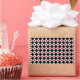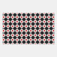 A stylish graphic pattern of interlocking black and white diamond shapes. Each white diamond contains a small red diamond adding depth to the original design.