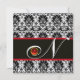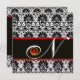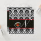 BLACK WHITE RED GOLD DAMASK MONOGRAM Ruby Invitation