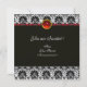 Elegant, classy, unique floral design,black white carnations with a bright 3D ruby gemstone . You can move gemstone to customize with your initials and own text as a wedding announcement ,place cards ,save-the-date ,romantic engagement , thank you cards , bridal showers,sweet 16 birthday parties anniversary,graduation or just about any event you wish!