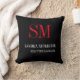 Black White Red Handwriting Monogram Minimalist Throw Pillow