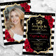 Yes, you can print on the back of your invitation for free! Most designs already have a corresponding design on the back that can be personalized using the Design Tool and going to Layers. This is a great way to communicate more information or further personalize your Black White Red Photo Surprise 50th Birthday Invitation. The option is really up to you.