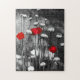 Black White Red Poppies Flower Art Template Floral Jigsaw Puzzle