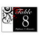 Add your special text to this black and white with red reverse swirl design. Great as a wedding table card place marker for guests. Black background with white vines and swirls in a contemporary stylish design theme.