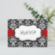 Black/White/Red Ribbon Damask Wedding RSVP Reply Card