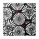 This minimalist, bold pattern looks like a hypnotizing or moving floral and sun design. It uses simple black and white rays (like a sunburst) and features small red leaves for a nice pop of color. This is a great retro look with a 60s style feel, perfect if you want a chic and modern statement piece.