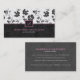Black white cute retro floral design with touch of pink, business card template monogramed.