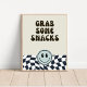 Black & white retro grab some Snacks food sign