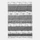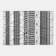 Often a favorite, black and white is, in this design, covered with retro patterns interspersed with vertical black stripes. Clean, simple, basic, fun.
