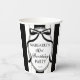Elegant Black and white retro stripes bow birthday party monogrammed printed paper cups, adults birthday party personalized name paper cups, stripped birthday party personalized table decor, oval ribbon bow border party printed paper cups, retro birthday personalized tableware, coquette birthday party personalized paper cups