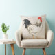 A painted black & white rooster on large cotton throw pillow - fun yet elegant accent for urban or vintage decor - the pillow is reversible, with vintage farm/chicken ephemera on the back!