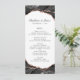 Provide your guests with this simply elegant wedding menu design featuring classic shades of black, white and grey agate with metallic rose gold foil veins. Customize it with your names, wedding date and menu options.