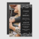 Magnetic photo wedding invitation in black with elegant white fonts and the lace-like outlines of hand drawn flower arrangements with roses and baby's breath. Add a photo on the front of the floral wedding invitation.