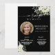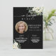This invitation features an elegant watercolor white roses and a simple and modern minimalist style with beautiful script calligraphy and sans serif and serif fonts on a black background. You can personalize with a photo of your loved one and information regarding the funeral/memorial service. You can customize the invitation to any way you would like to remember and honor the memory of your loved one. Just note that the wording "in loving", "service", and "reception" cannot be edited. You can change the color or remove it from the funeral memorial service invitation announcement if you would like. Just hit customize the invitation.