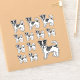 Destei's original cartoon illustration of a black and white rough coat Jack Russell Terrier breed dog. The design is placed 12 times on the sheet in three different sizes. There is one bigger dog, three medium size dogs and eight small size dogs.